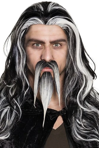 Deze grijze met zwarte sik met snor is perfect voor bijvoorbeeld een tovenaars karakter.