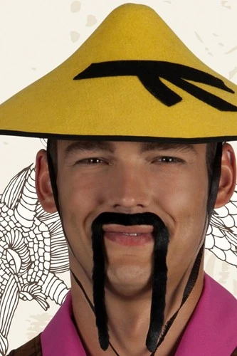 Deze zwarte snor is zeer geschikt voor bijvoorbeeld een Chinees.