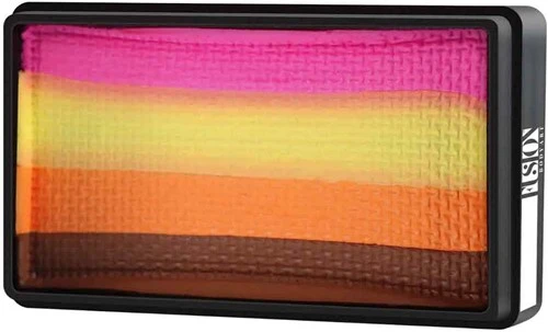 Fusion Body Art Splitcake Schmink is snel en gemakkelijk aan te brengen met een vochtige penseel of spons. Als je alle kleuren in één keer met een penseel aan wilt brengen dat kan je het beste penseel S20 gebruiken. Fusion Rainbow Cake schmink kan eenvoudig worden verwijderd met water en zeep of met de schminkwashand. Omdat Fusion Body Art schmink veel pigment bevat adviseren wij om Marly Skin huidbeschermingsschuim aan te brengen voordat je gaat schminken. Fusion Body Art schmink bevat alleen hoogwaardige FDA- en EU-conforme huidveilige pigmenten en ingrediënten die zacht zijn voor de huid. Elke kleur is zorgvuldig ontwikkeld om u de helderste en meest dekkende kleuren te geven voor jouw schminkontwerpen. Fusion Body Art schmink droogt snel en heeft na droging een veegvaste finish. Je kunt kleuren over elkaar heen leggen zodra de basiskleur droog is, en je kunt Fusion Body Art schmink mengen terwijl ze nog nat zijn om eindeloos mooie tinten te maken.