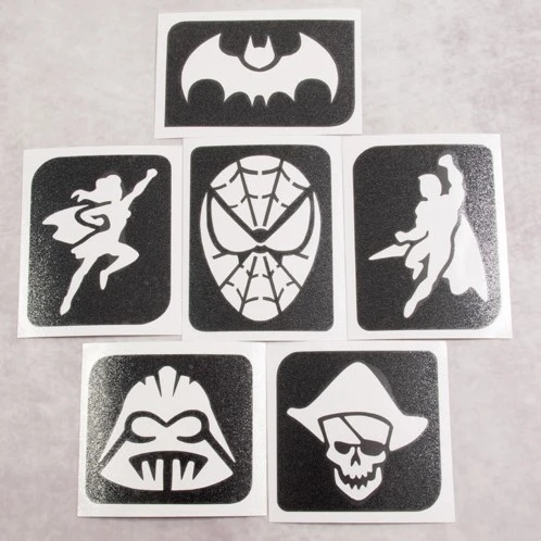 Met deze Hero glittertattoo sjablonen maak je heel eenvoudig een leuke glittertatoeages.