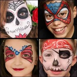 De Basic Schminkset van Grimas bevat de kleuren wit (001), zwart (101), blauw (301) en rood (505). Deze veelgebruikte kleuren vormen de basis voor tal van leuke schminkvoorbeelden, zoals schattige vlinders, griezelige sugarskulls, stoere piraten en dappere superhelden.