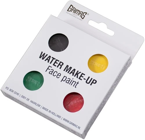 Deze vrolijke Grimas Schminkset Festival bestaat uit 4 kleuren Water Make-up (2,5 ml).