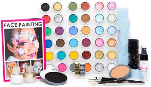 Dit Schmink pakket H bevat alles wat je nodig hebt als beginnend schminker. Met dit schminkpakket heb je een prima basis met 36 kleuren Grimas Water Make-up waarmee je kan schminken. Grimas Water Make-up is een ongeparfumeerde en glutenvrije watermake-up, bedoeld voor gezichts- en lichaamsbeschildering. De schmink kleuren van Grimas zijn onderling mengbaar. De schmink van Grimas mag op de slijmvliezen en rondom de ogen gebruikt worden en voldoet aan de Europese cosmetica wetgeving.