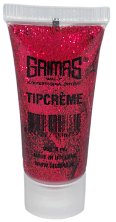 Grimas Tipcrème 051 is een glittergel in de kleur rood. Tipcrème is een helder glanzende polyethyleen glitter in een sneldrogende en gemakkelijk afwasbare geltextuur. Het wordt gebruikt voor onder andere gezichtsbeschildering. Anders dan de naam crème doet vermoeden, bevat de gel geen oliën en wassen. Tipcrème zit in een tube van 8 ml.