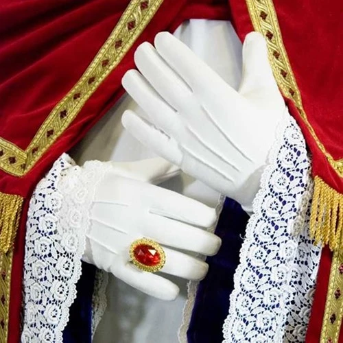 De mooie witte luxe handschoenen zijn onmisbaar voor Sinterklaas. Deze Sint handschoenen zijn gemaakt van 100% Katoen en uitwasbaar met een handwasprogramma op 30 graden. Deze Sinterklaas handschoenen hebben een totale lengte van 40 cm (volwassen maat).