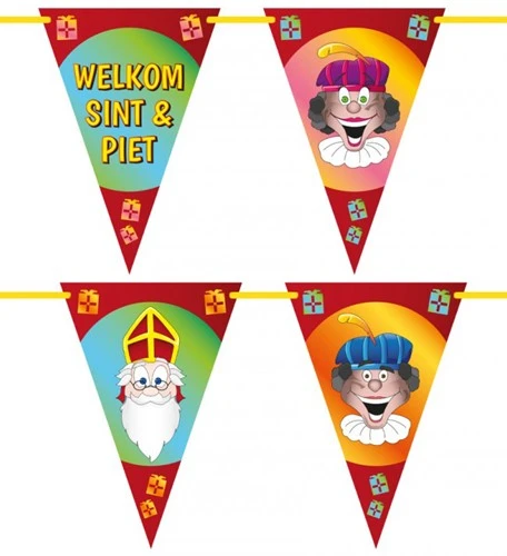 Deze kleurrijke sinterklaas vlaggenlijn heeft vlaggentjes met vrolijke illustraties in het Sinterklaas thema.