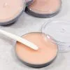 Verwijder eerst de make-up met een vochtige doek en was vervolgens weg met zeep en warm water. Kan een tijdelijke kleurwaas achterlaten.
