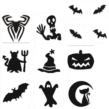 Met deze halloween glittertattoo sjablonen maakt u heel eenvoudig een leuke glittertatoeage in het halloween thema.