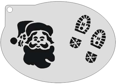 Met dit schminksjabloon schmink je snel en eenvoudig een mooie afbeelding van een de kerstman en zijn voetstappen.