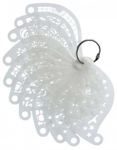 De schminksjablonen zijn voorzien van perforatiegaatjes waardoor u met een ringetje, alle stencils aan elkaar kunt maken.