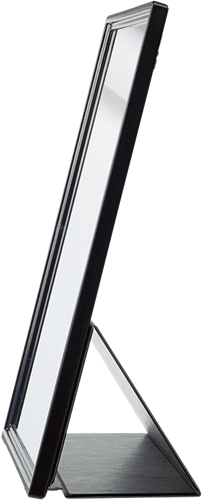 De spiegel is verpakt in een hoes, die de spiegel tijdens het vervoeren beschermt. Ben je op locatie dan klap je de inklapbare voet (net als bij een I-pad of een andere tablet) eenvoudig in en je mobiele werkplek is klaar. De afmetingen: 31,8 cm (hoog), 23,3 cm (breed) en 1,3cm (diep). De Sibel I-Mirror opklapbare spiegel heeft een praktisch formaat, verstelbare hoek, is licht en makkelijk te transporteren.