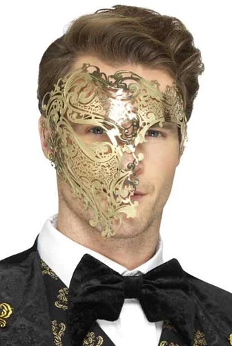 Deluxe metalen Venetiaans filigraan goudkleurig phantoom oogmasker. Zeer geschikt voor Carnaval, thema feest of een verklede party.