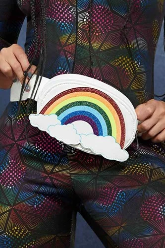 Het tasje is gemaakt van een wit kunstleer, heeft een rits en is voorzien van een riem met handige klikgesp.