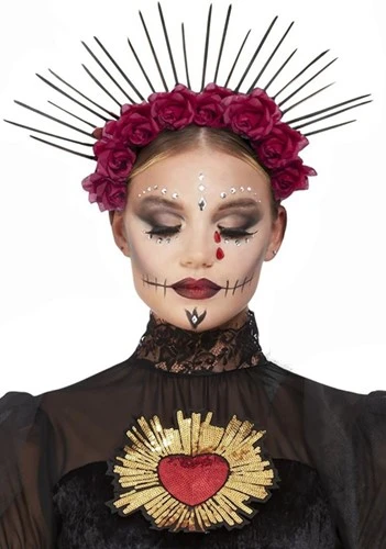 Deze Sunburst dag van de doden haarband is voorzien van rode rozen.