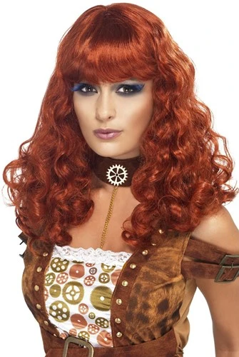 Deze Steam Punk pruik heeft een pony en heeft golvend haar.