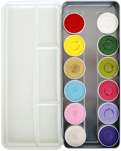 Superstar Schminkpallete Botanical bevat 12 kleuren een zeer gebruiksvriendelijke waterschmink van hoge kwaliteit en voldoet aan alle strenge eisen van de Europese Cosmetica Wetgeving (1223/2009/EG).